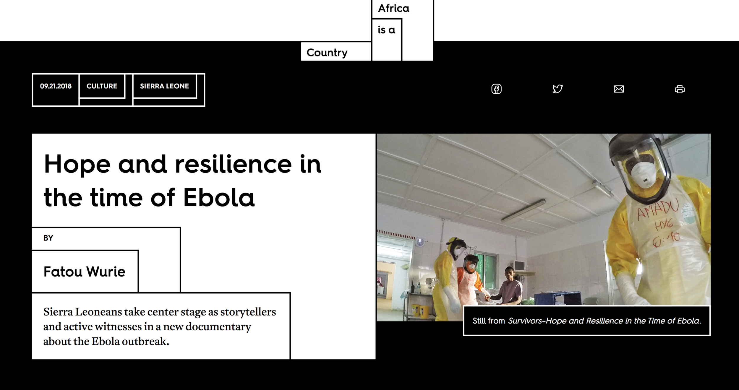 The film sends a resounding message by repositioning its storytellers not only as proactive actors, but also as active witnesses to the crisis; ushering us to move past any assumption that Sierra Leoneans were passive recipients of structural, human or financial support. Rather, the interwoven narratives of Mohamed Bangura, Foday Koroma and Nurse Margaret Sesay, pull us into a world colored by the grace and resilience of ordinary people surviving extraordinary circumstances.